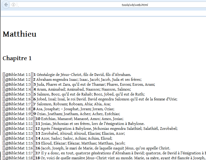 En l'état, l'outil permet assez aisément de convertir un module biblique. La partie référence de l'outil n'est pas entièrement fonctionnelle : en cas de besoin spécifique, contactez-moi.