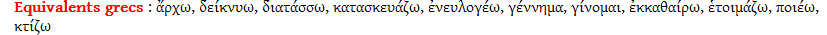 Comme leur nom l'indique, les Équivalents grecs permettent de découvrir quels termes grecs correspondent au terme hébreu courant. Cette base se fonde sur le module de Pierre Leblanc, Greek to Hebrew Dictionary of Septuagint Words, avec son aimable autorisation. Ce module est lui-même tributaire des références suivantes : Abbott-Smith, Manual Greek Lexicon of the New Testament et Hatch et Redpath, Concordance to the Septuagint. Cliquez sur un mot grec pour lancer une étude de mot (qui remplacera la fenêtre courante).