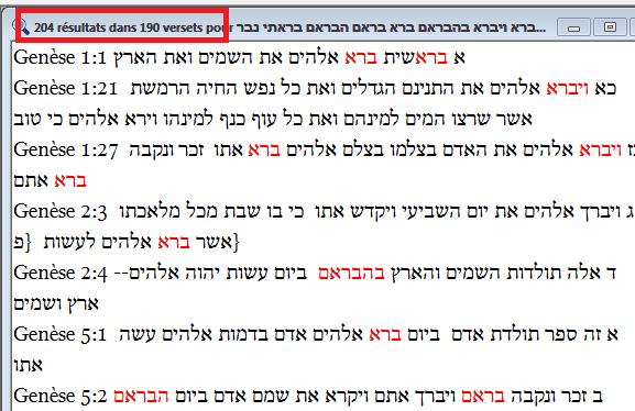 Si vous cliquez sur l'une des formes (ex. בְרָאתָם) une recherche exacte est lancée dans ALE (Codex Aleppo) :
