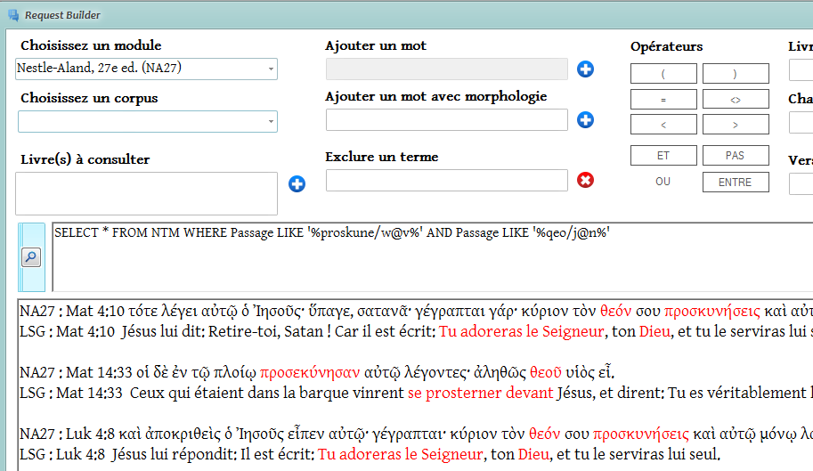 22. Request Builder : Traduction française pour NA27, LXX, BHS